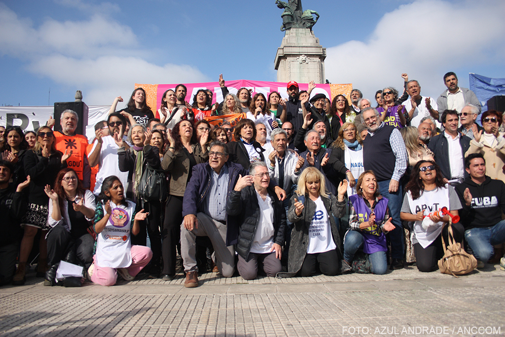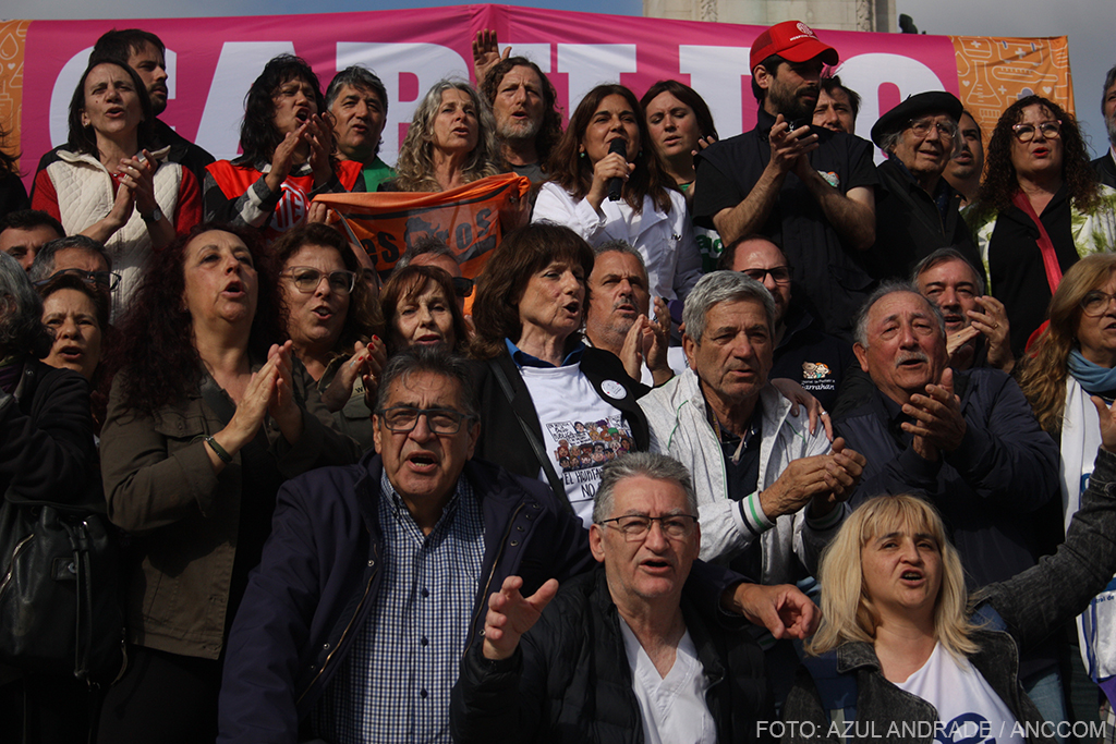 El documento leído estuvo firmado por decenas de organizaciones sociales, gremiales y políticas, cuyos representantes acompañaron a Pérez Esquivel en el escenario en una demostración de unidad frente a la inminente discusión de los vetos 647/2025 y 651/2025, correspondientes a las leyes de Financiamiento Universitario y de Emergencia Pediátrica, respectivamente. En este sentido, el documento también mostraba “solidaridad” con “todas las causas justas del pueblo”, que incluía a las protestas semanales de jubilados y al reclamo que encabeza el CONICET en materia de Ciencia y Tecnología, cuya Ley de Emergencia del Sistema Nacional de Ciencia, Tecnología e Innovación también se tratará el miércoles.