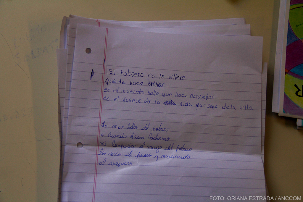 Por ese motivo leyó de su colorido cuaderno tres poemas dedicados al fútbol: “Desde la ventanilla del bus”, de Claudio Bertoni; “Estadio de noche”, de Günter Grass; y “Fútbol”, de Blanca Varela. Pese a los ruidos de los handies de los guardias, los jóvenes escuchaban con atención, sentados en grupos de cuatro. Aunque con una evidente falta de confianza, de a poco fueron comentando lo que entendían y les despertaba cada verso.