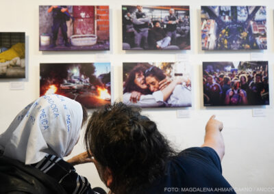 Entre los reporteros gráficos que exponen, se encuentran los editores de ANCCOM Leandro Teysseire y Victoria Gesualdi y las exintegrantes del equipo de fotoperiodistas de la agencia, Cristina Sille, Camila Godoy y Rocío Prim.