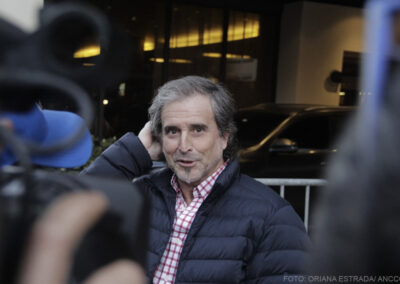 El clima inicial dentro del hotel fue de una calma inusual. Predominó el hermetismo: la prensa estaba ubicada detrás de una valla y lejos de la actividad principal y había un oficial apuntando un inhibidor de drones contra los aparatos que sobrevolaban la zona. Además, la avenida Córdoba no se hallaba del todo cortada. Cuando los dirigentes entraban al bunker, se detenían a saludar a los militantes apoyados sobre las rejas. Entre ellos, el presidente Javier Milei, que levantó un cartel que decía “Fuerza del Cielo – Virrey del Pino”. Su sonrisa dejaba entrever optimismo ante los resultados que comenzaban a trascender.