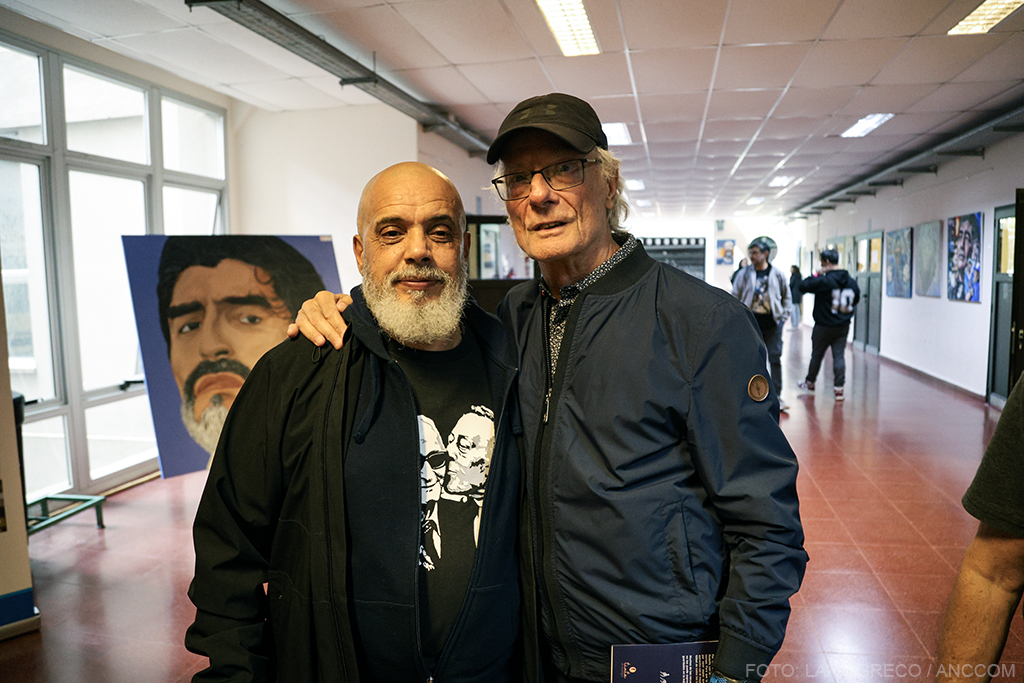 El Profe comenzó a trabajar con Diego en el año 1983, cuando Maradona estaba en Barcelona y lo ayudó a recuperarse de una grave lesión en el tobillo. En medio del ritmo frenético y el éxtasis que rodeaba la apertura del evento, el primer lugar que buscó Signorini fue la Galería de Arte del Congreso, rememorando esos mil y un recuerdos que sigue atesorando de su amigo.