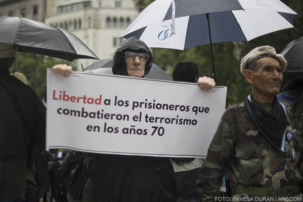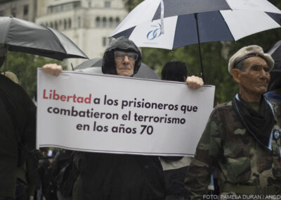 La marcha organizada para exigir la libertad de los represores que cometieron crímenes de lesa humanidad durante la última dictdura concentró menos presentes que fotógrafos. Se retiraron cuando se acercaba la marcha que reivindicaba a Palestina. Mirá las fotos de ANCCOM.