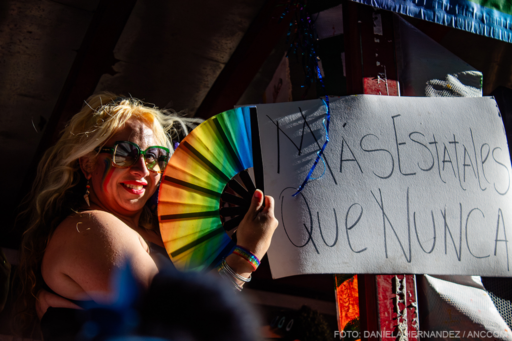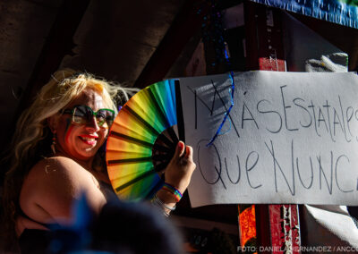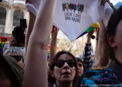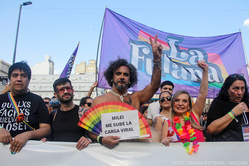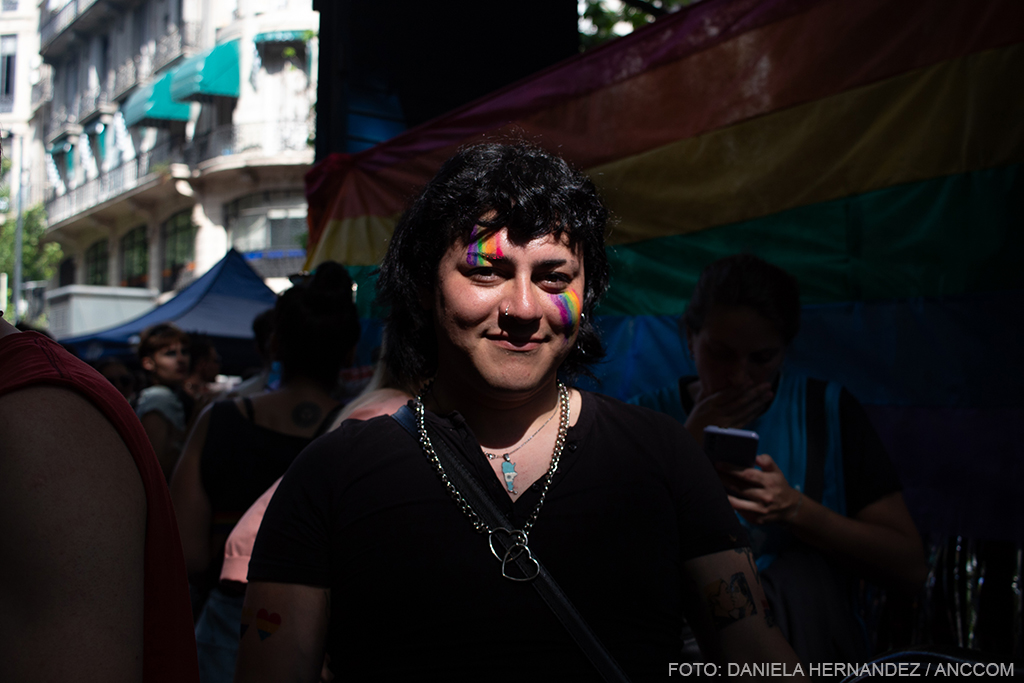Cerca del escenario, una joven con el rostro pintado como calavera, chaleco de jean con la leyenda «abajo el cis-tema» y un abanico arcoíris en mano, declara que «estar hoy en la marcha es un acto revolucionario para todes porque si no nos visibilizamos nosotros, no lo va a hacer nadie”. A su lado, un muchacho amplía la idea: “Quieren quitarnos todos los derechos que supimos conseguir, así que los vamos a defender”.